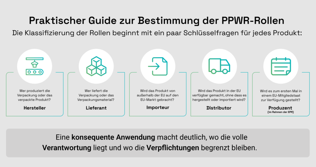 Eine falsche Einstufung führt zu unpassenden Compliance-Maßnahmen. Die PPWR weist den einzelnen Rollen unterschiedliche Pflichten zu, darunter: