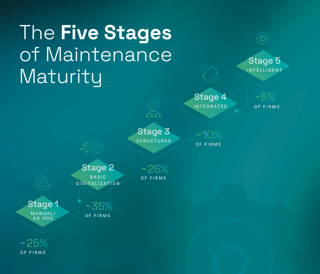 Pour aider les organisations à avancer dans ce parcours complexe, osapiens et Fraunhofer IML ont conçu conjointement l’indice de maturité de la maintenance (Maintenance Maturity Index) : un cadre en cinq étapes décrivant l’évolution des pratiques, depuis les processus manuels et ponctuels jusqu’à une maintenance entièrement prédictive et pilotée par l’IA.