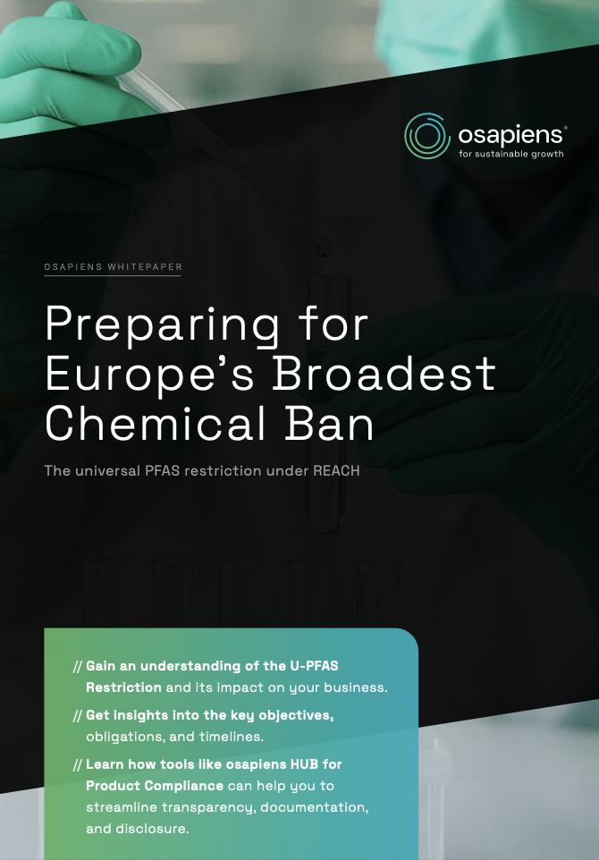 Gli esperti osapiens hanno realizzato una guida che ti aiuta a identificare e dichiarare rapidamente i PFAS, rispettare gli obblighi normativi e mantenere l’accesso al mercato — senza bloccare i tuoi processi operativi.