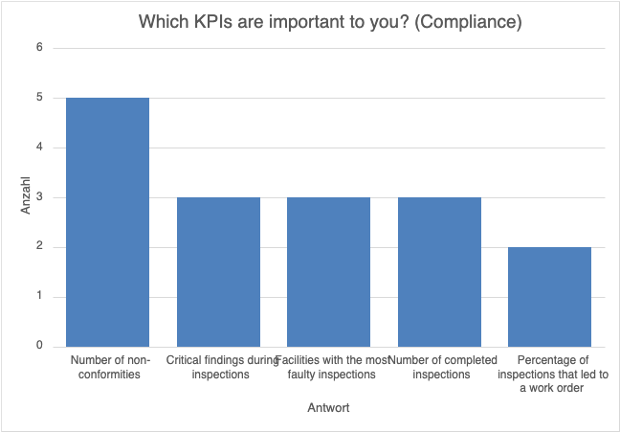 In a recent survey among maintenance managers, we asked about the KPIs they consider most important in their day-to-day work. Each participant could select up to three KPIs that they find most relevant. What was evaluated? Six experts were asked to rank the following six categories by relevance: Each participant created their own ranking from “most important” to “least important.” We
