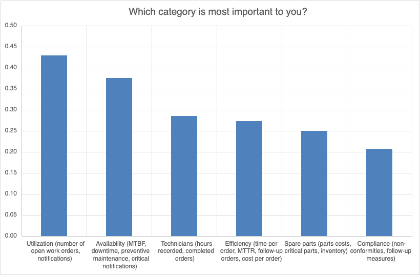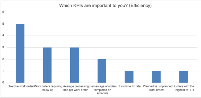 In a recent survey among maintenance managers, we asked about the KPIs they consider most important in their day-to-day work. Each participant could select up to three KPIs that they find most relevant.