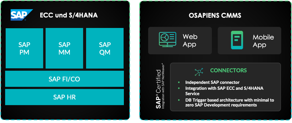 osapiens CMMS is designed to be both compliant and easy to use. It combines a clean, mobile-first user experience with powerful integration capabilities for SAP systems such as S/4HANA and ECC.
