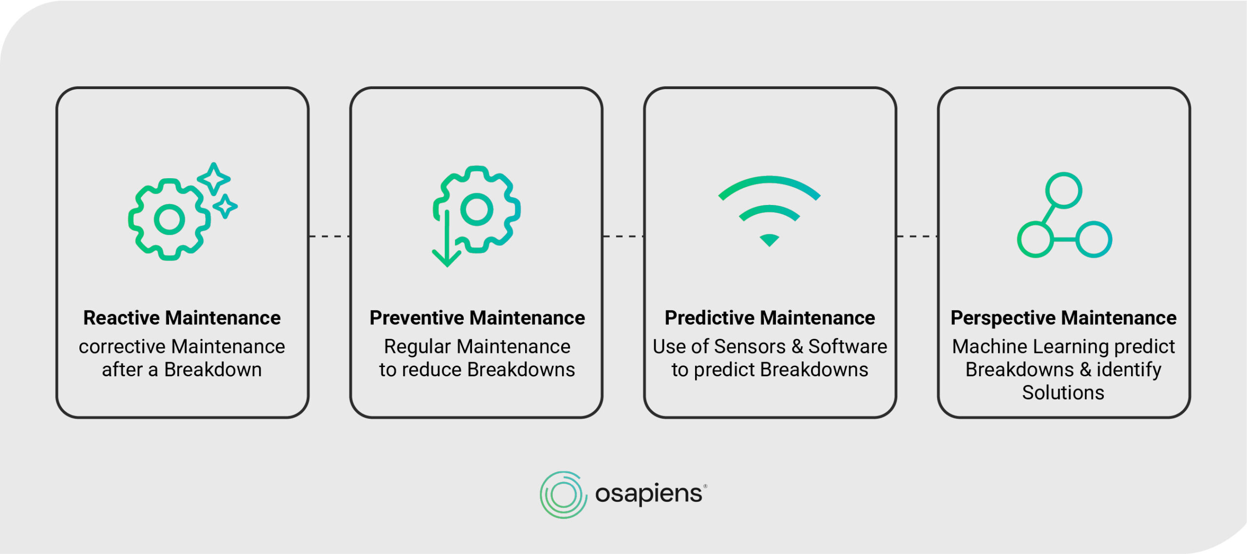 - Transform your maintenance with osapiens HUB – start free: The osapiens HUB for Maintenance integrates predictive strategies through real-time monitoring, automated work order creation, and analytics dashboards that turn sensor data into actionable maintenance plans.