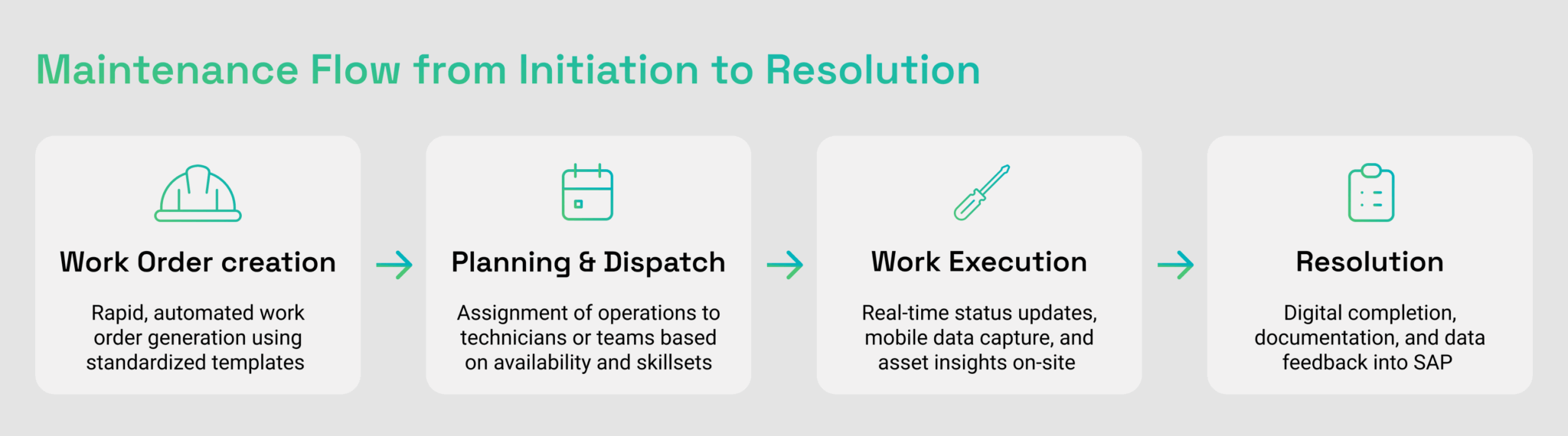 - Resolution: Digital completion, documentation, and data feedback into SAP