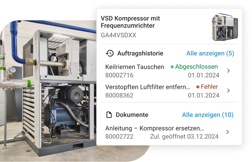 - Vollständige Wartungshistorie: Wann wurde die Maschine zuletzt gewartet? Welche Teile wurden getauscht? Gab es wiederkehrende Probleme? Alle Antworten direkt verfügbar – für schnellere Diagnosen und weniger Rückfragen.