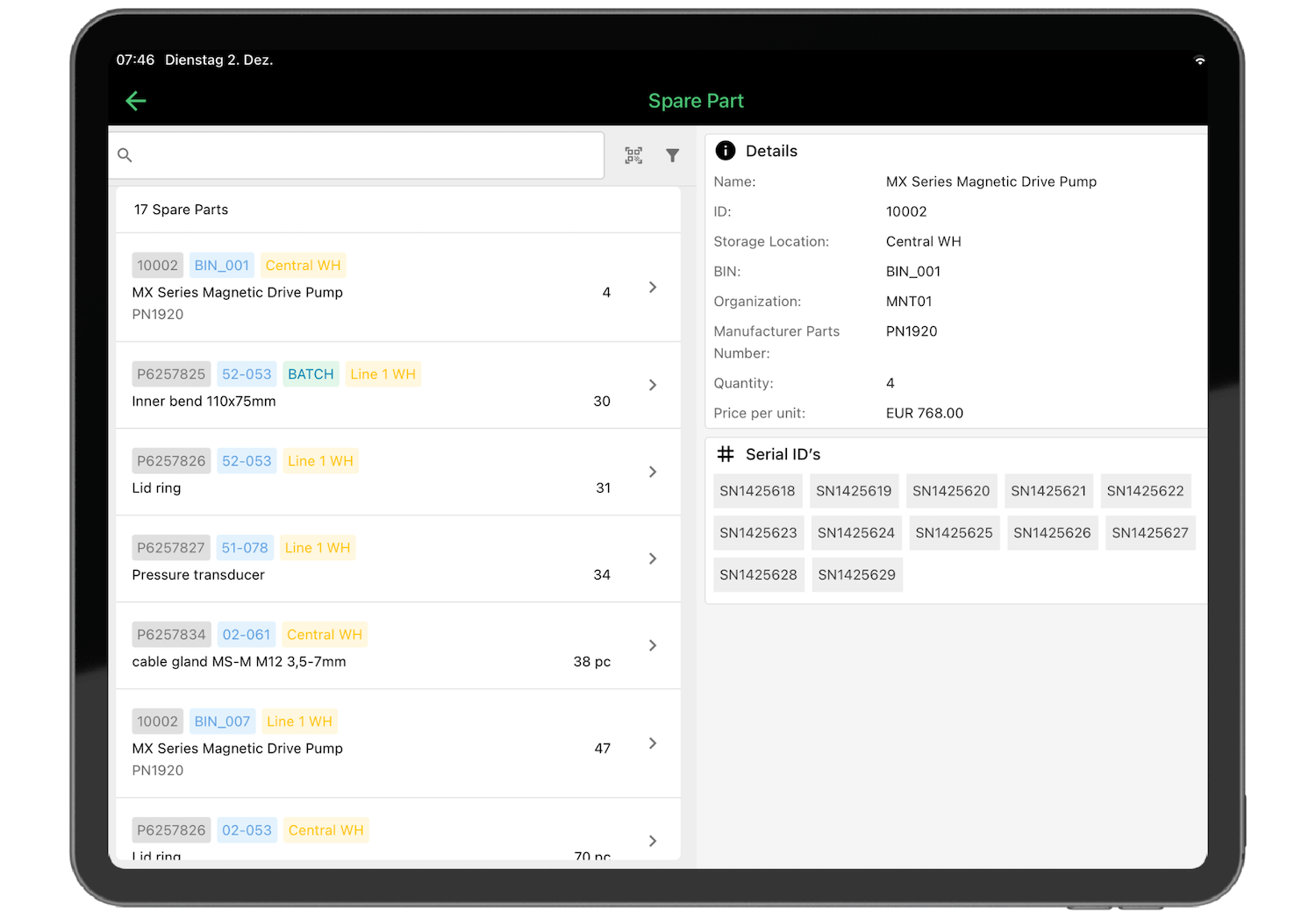 Mobile Ersatzteilbestellung und Lagerverwaltung