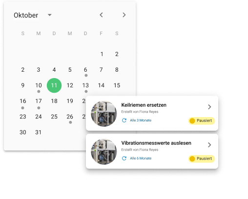 - Standardisierte Wartungsabläufe: Vorgefertigte Checklisten für wiederkehrende Inspektionen, angepasst an Anlagentyp und Wartungsintervall. Kein Prüfpunkt wird vergessen.