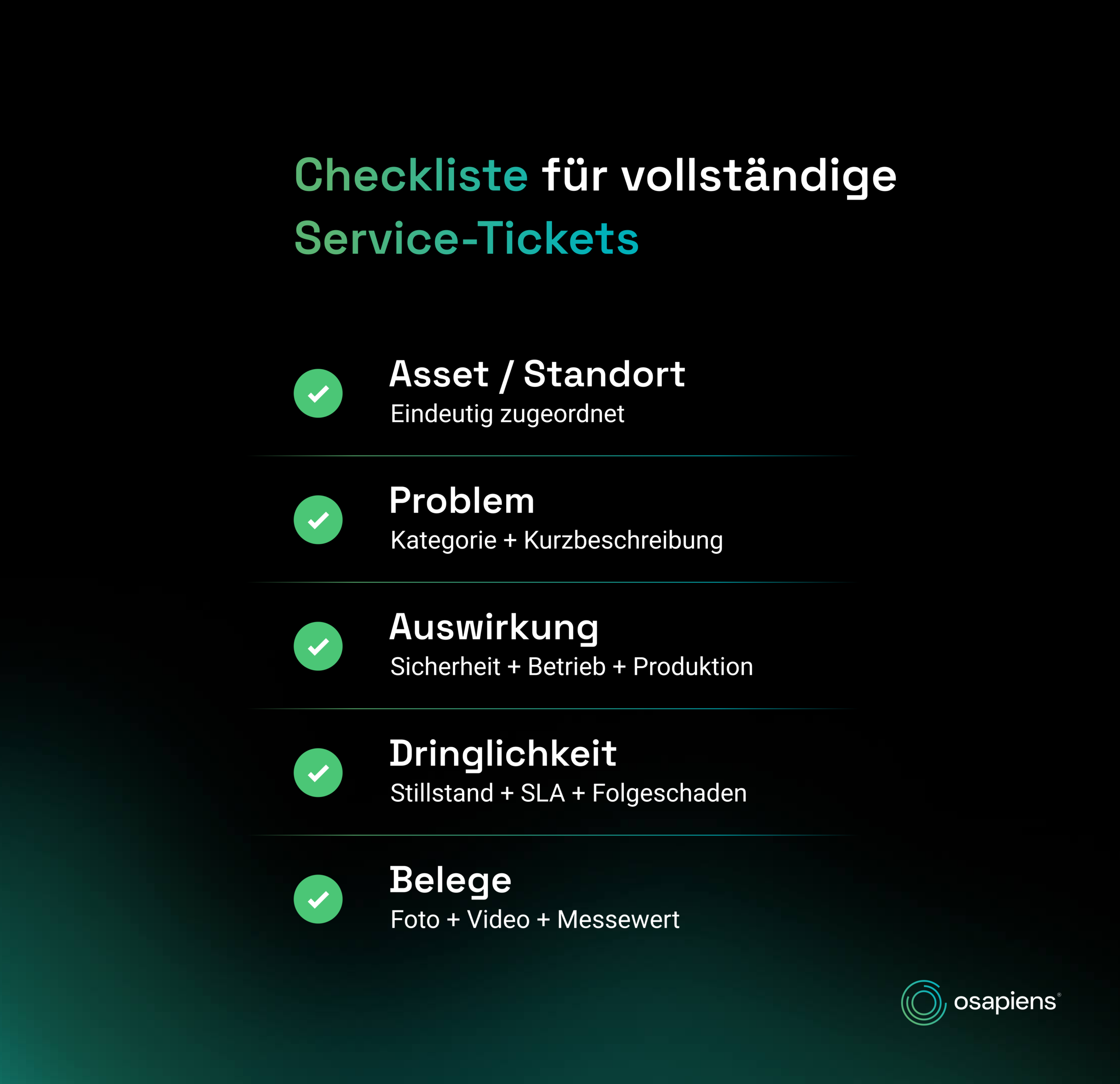 Beim osapiens HUB for Service ist genau dieser Gedanke zentral. Anfragen sollen nicht mehr über Telefon, Zuruf oder Zettel laufen, sondern in einem System landen, das eine Echtzeitübersicht bietet und Tickets sauber sortierbar macht. Das ist die Basis, damit aus Chaos wieder Ordnung wird.
