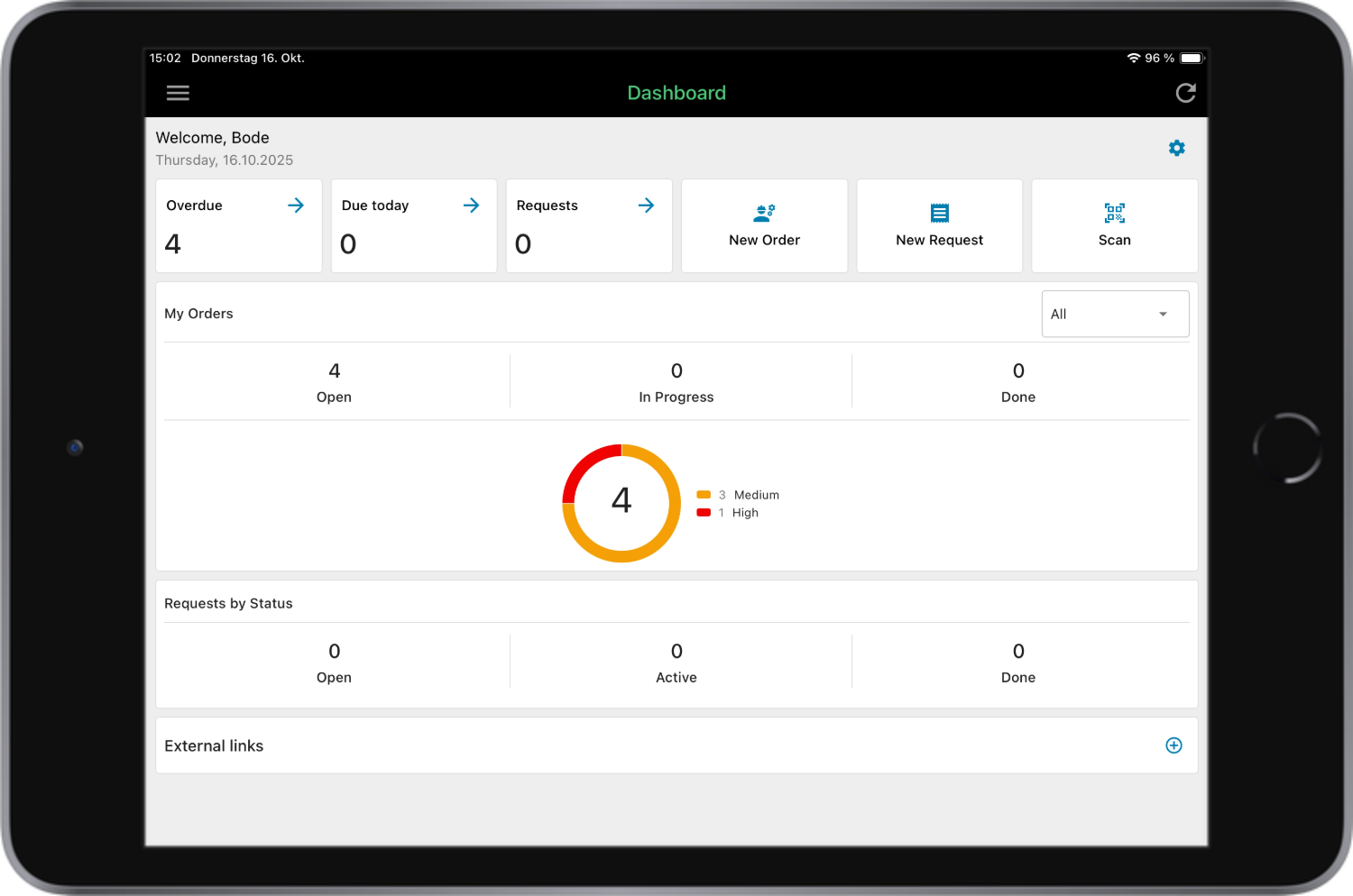 - Datenbasierte Entscheidungen: Dashboards im osapiens HUB visualisieren zentrale KPIs wie Anlagenverfügbarkeit, Wartungskosten und Reaktionszeiten – für strategische Optimierung Ihrer Prozesse.