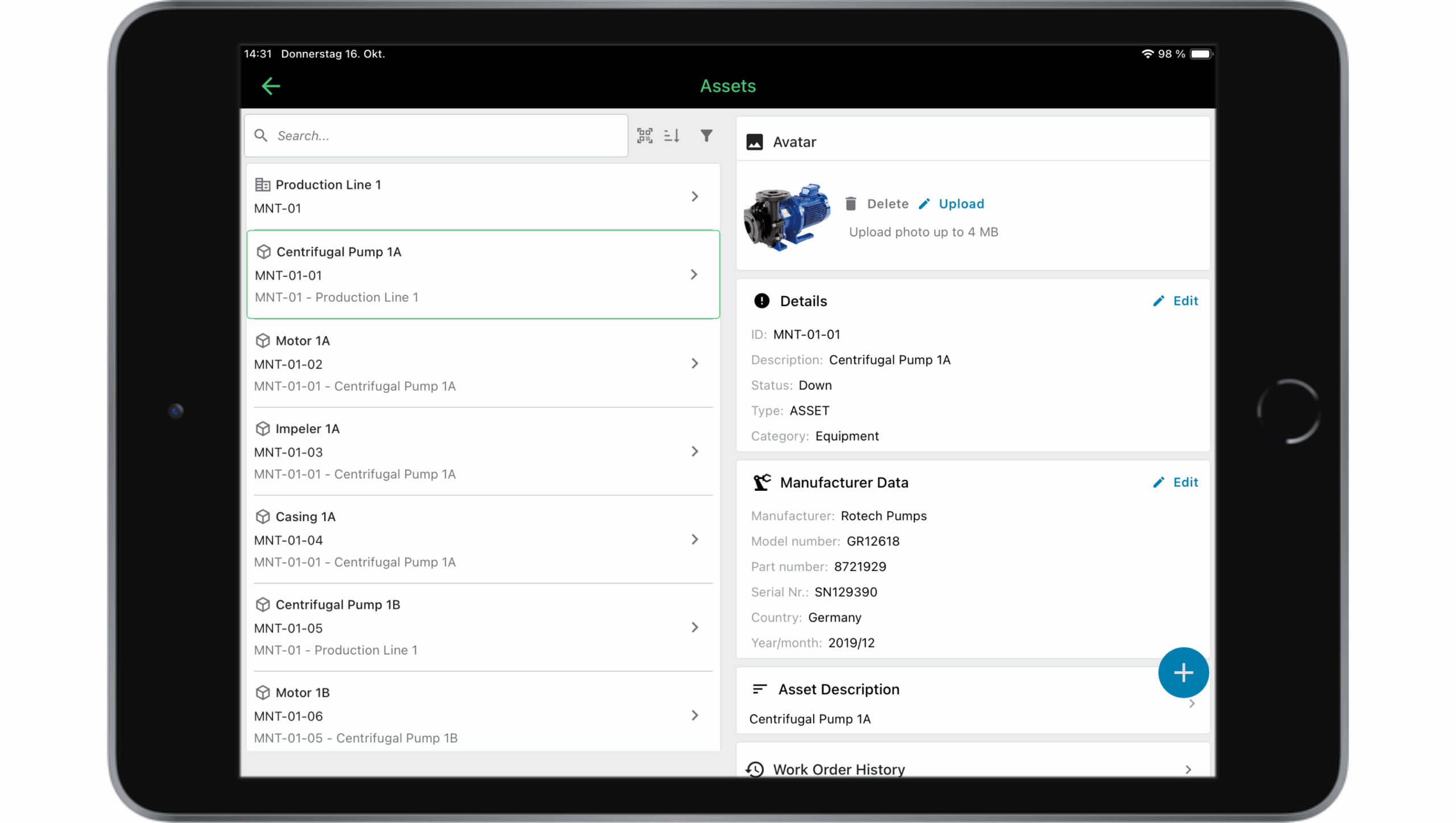 Das EAM-System erstellt ein vollständiges Asset-Register mit allen relevanten Informationen: Asset-Details, Spezifikationen, Standort, Erwerbsdatum und Wartungshistorie. Unternehmen können Assets nach Typ, Standort oder Abteilung kategorisieren. Asset-Hierarchien bilden mehrere Verwaltungsebenen ab – von Maschinen über Komponenten bis zu Ersatzteilen.