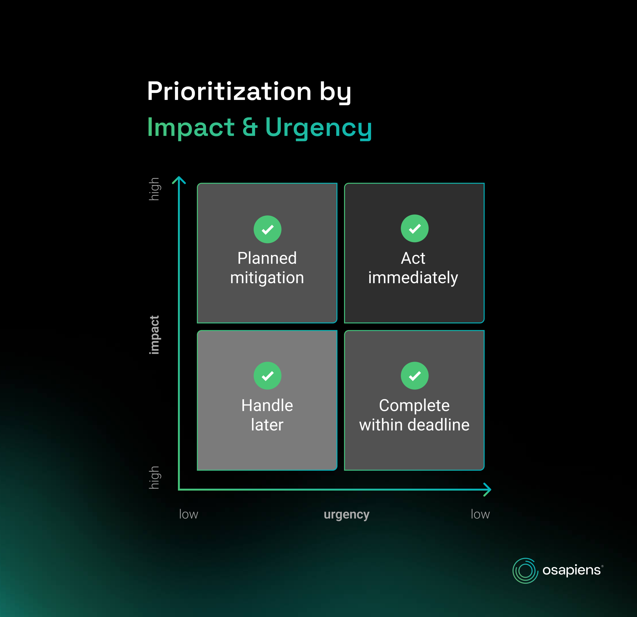 - Clear prioritization based on impact and urgency