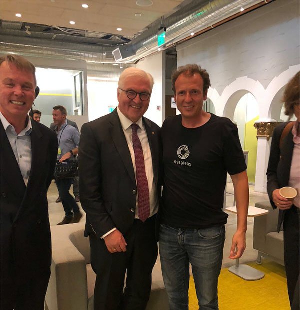 During his visit to Palo Alto (USA), the President of the Federal Republic of Germany, Franz-Walter Steinmeier, met our co-founder and CEO Alberto Zamora and got to know osapiens, our mission and our software solutions. The Federal President emphasized that the growth of forward-looking technology companies that generate significant added value for our society must be encouraged so that digital solutions, such as those developed and implemented by osapiens, can play an essential role in addressing the major socio-political and socio-economic challenges of our time in the future.